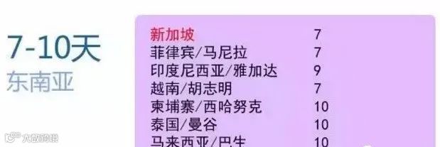二、东南亚地区(新马泰等):7-10天