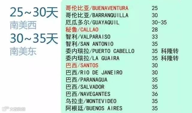 十二、南美线:西岸25-30天,东岸30-35天