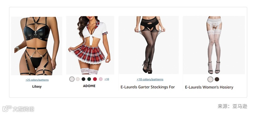 热销产品价格集中在10-25美元区间。小品牌通过差异化突围:Lilosy专注吊带袜,ADOME主打制服风,E-Laurels则以10美元以下的丝袜、连体袜实现高复购[k]。