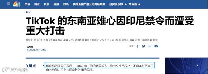9月中下旬印尼政府官员才发话,要禁止在社交媒体上进行电商活动,一个假期过去后,TikTok Shop就已经关闭了印尼市场,就是这么快。