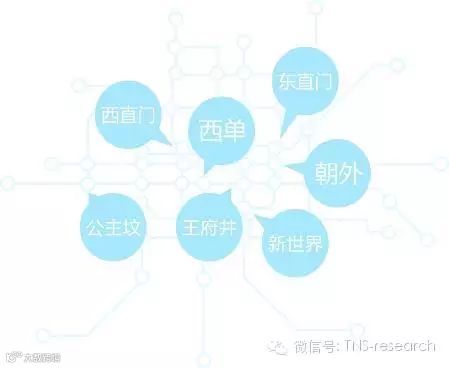北京居民最常光顾的商圈依次为西单、新世界、王府井、朝外、公主坟、东直门、西直门和中关村。