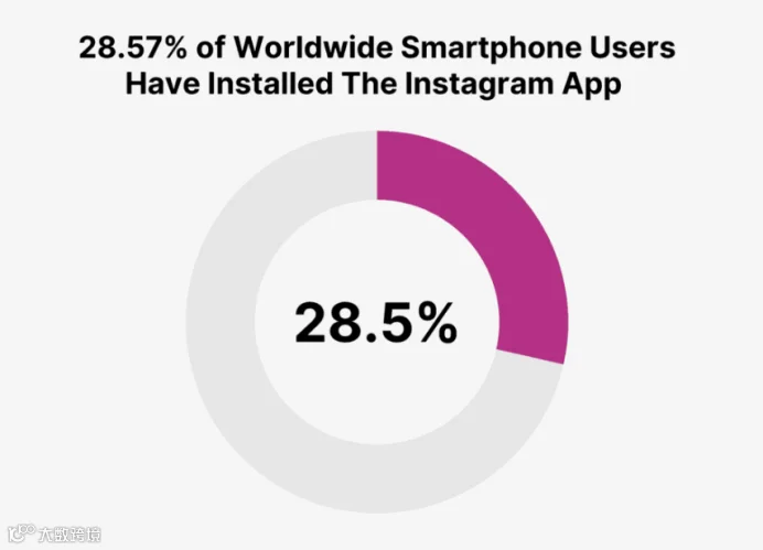 据eMarketer数据显示,每个月大约超过10亿人使用Instagram APP,全球有28.5%的用户使用Instagram,到2021 年,Instagram在全球所有社交媒体网络中排名第四,拥有超过13.86亿活跃用户,其中25岁的用户大约每天花费30分钟使用Instagram。