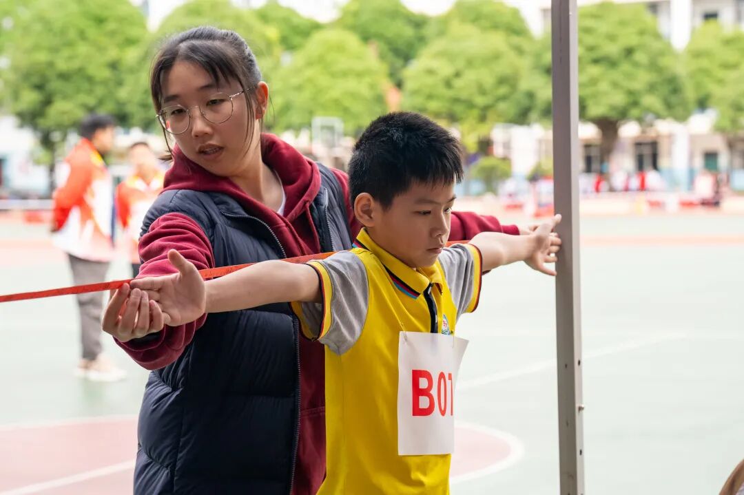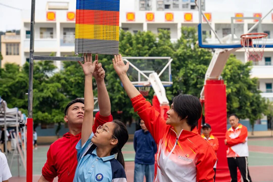 高敏与专业教练员组成评审团队,仔细观察每一位学生的表现,记录相关数据。面对孩子们热切的目光,高敏显得亲切而耐心。她不时走到孩子们身边,亲自示范动作要领,并送上鼓励的掌声。“希望通过我们的努力,为他们打开一扇通往更广阔世界的大门,为他们的体育梦想插上翅膀。”高敏表示。