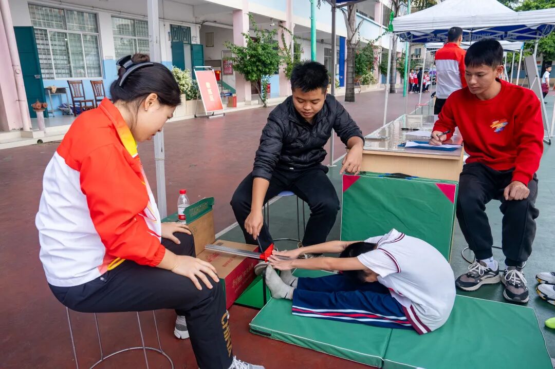 当日下午,“选苗计划” 体能测试选拔正式启动。同学们先后接受包括身高体重比例、臂长、跟腱长度等身体基础条件测量,以及肺活量、站立摸高、立定跳远、一分钟仰卧起坐、波比跳、一分钟跳绳、俯卧撑、坐位体前屈等一系列专业体能测试。项目旨在全面评估孩子们的身体素质、爆发力、耐力和柔韧性,为选拔跳水、体操、田径、篮球、举重、羽毛球等多个项目的潜力新星提供科学依据。