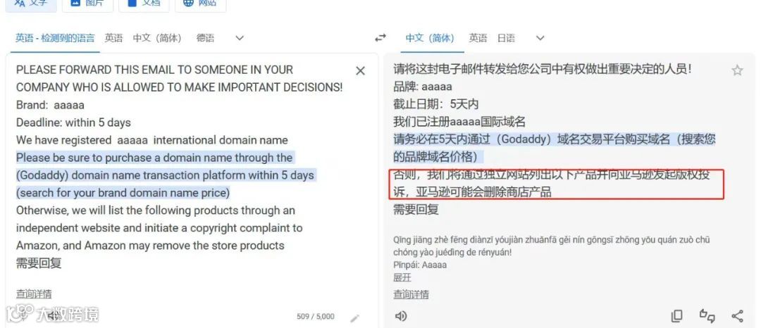 但是,最近有卖家朋友遇到了被奸商敲诈的案例,如下图是卖家收到的邮件内容。