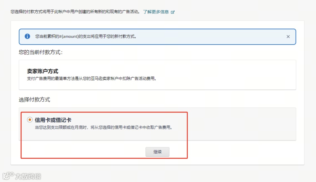 平台方也鼓励卖家们在亚马逊广告管理账户后台的支付入口绑定信用卡/借记卡,可防止因账户余额不足无法成功支付导致的广告投放暂停。
