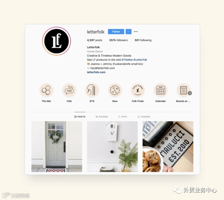 Letterfolk 的 Instagram 账号专注于展示畅销产品在真实生活中的应用,每张图片配以引发共鸣的文案,形成统一视觉主题[k]。