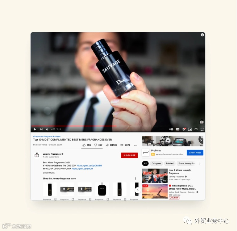 适合发布顾客推荐、产品演示、教程、评测、视频博客等类型内容[k]。例如 Jeremy Fragrance 通过香水评测与教程视频,每月获得数百万观看,并直接链接至其电商商店 Fragrance.One 实现转化[k]。