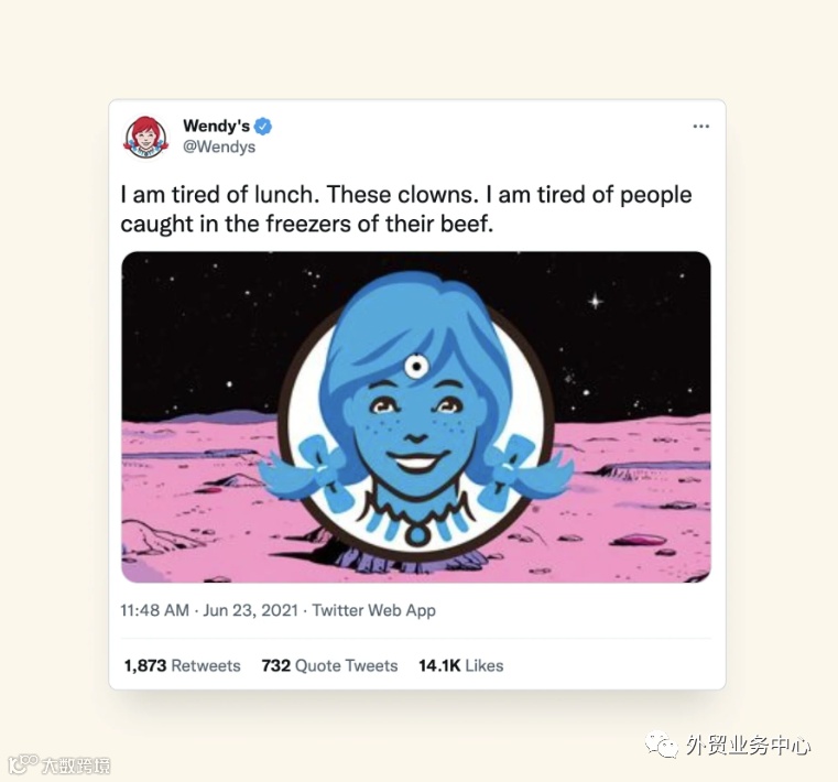 Twitter 擅长实时互动与品牌人格化表达,适合展示品牌个性(如 Wendy’s、Moon Pie)[k]。