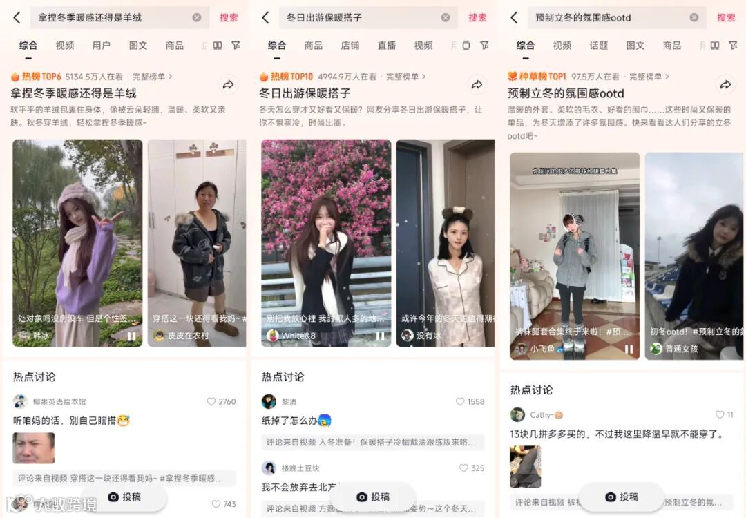 保暖季活动期间七大热点均登陆总榜,#拿捏冬季暖感还得是羊绒 登总榜TOP6,#预制立冬氛围感ootd 成为种草榜TOP1,不仅引爆了短期关注,更通过持续的内容演绎,让每一场内容投入都成为品牌长线价值投资。