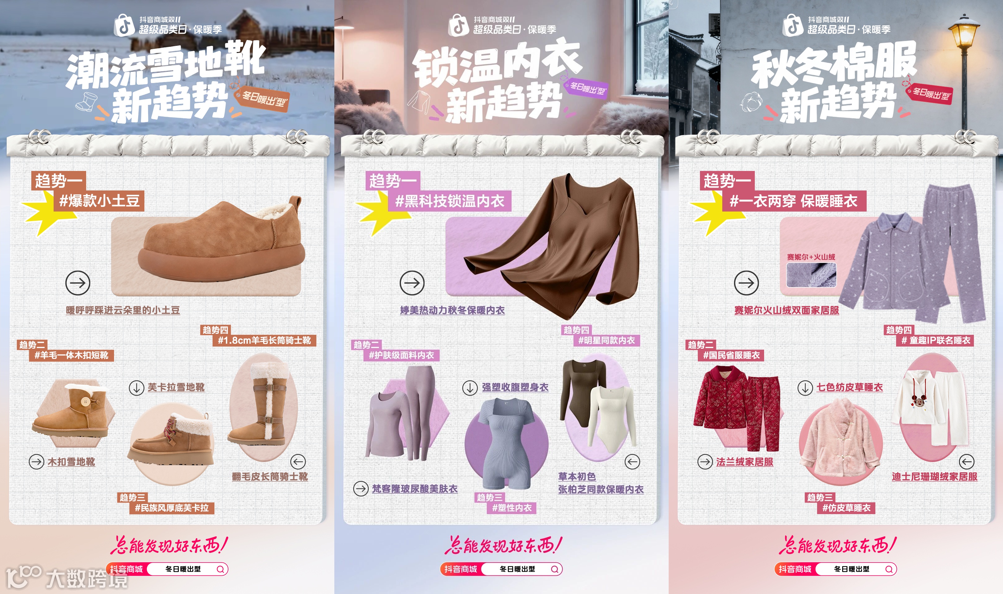 不过,转机正在发生。浪潮新消费观察到,在近日开启的保暖季品类活动——「冬日暖出“型”」中,抖音电商从内容创新入手,通过信任场景化、价值故事化、经营长效化,系统性地解决了服饰行业在应季经营中的三大核心痛点,活动上线两天,对应类目生意爆发增长407%,同比提升63%,为生意提供了新的增长范式参考。