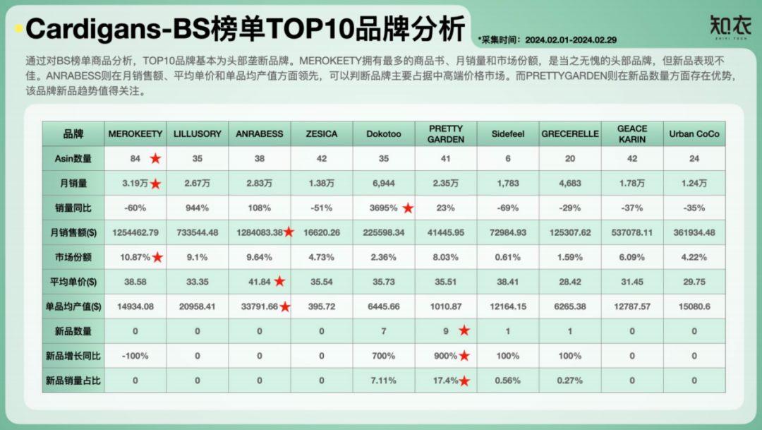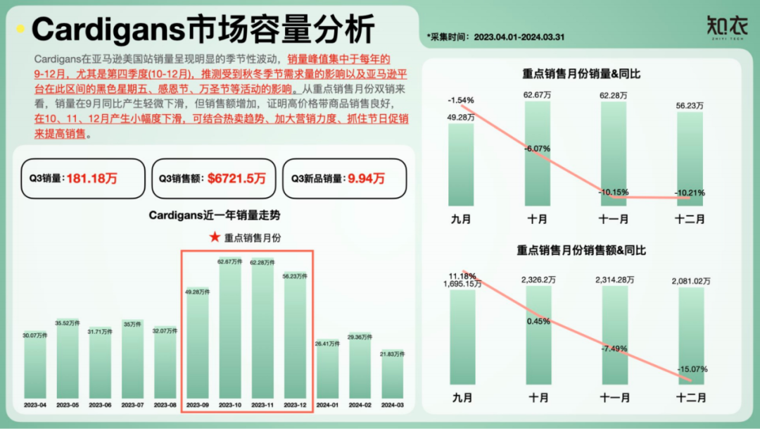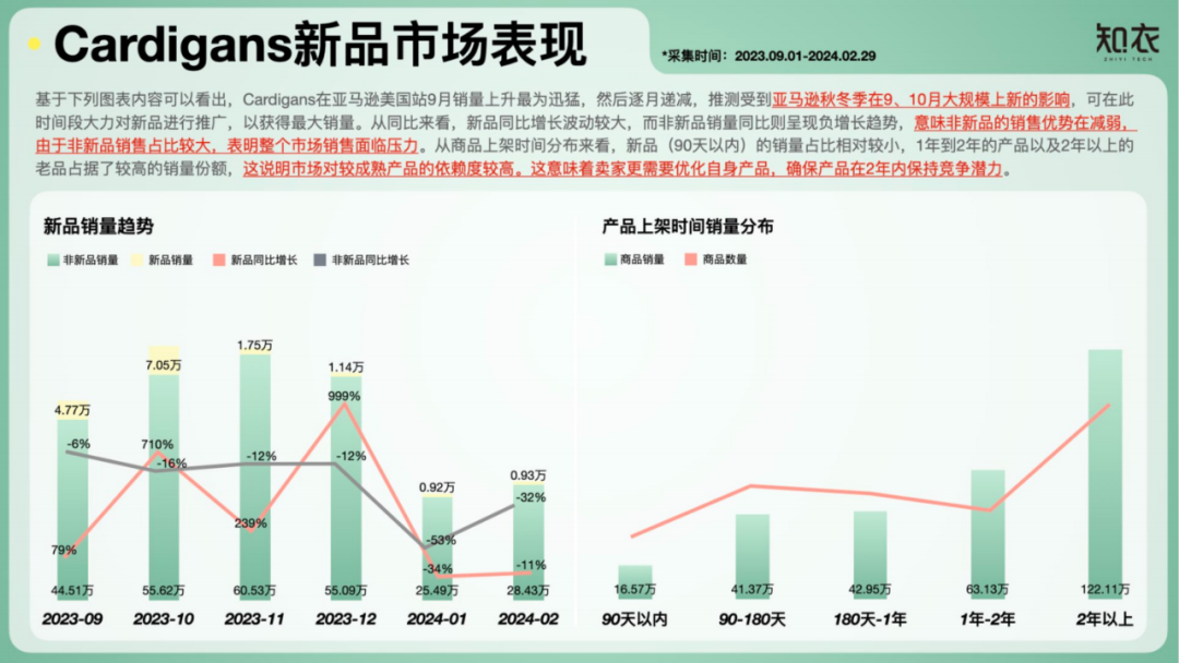 知衣科技发布《2024亚马逊女装市场数据&趋势分析报告:Cardigans品类》,深入解析该类目的价格格局、新品表现与消费者偏好。