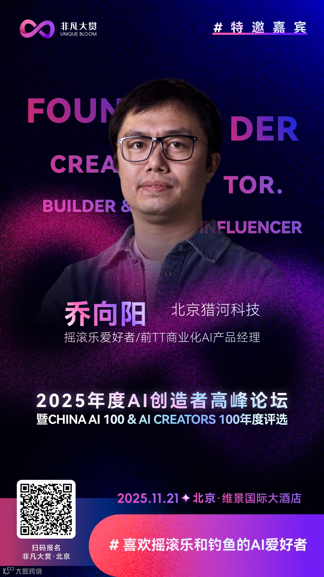 乔向阳:摇滚乐爱好者、前字节商业化 AI 产品经理、AI 自媒体。