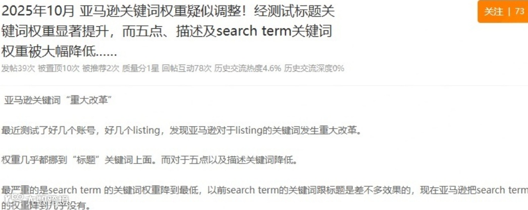 亚马逊的算法正在不断进化。现在的系统更擅长读取商品前台能看到的内容,比如标题、五点描述、A+页面等,而对于后台那些隐藏字段的识别度反而下降了,权重自然就开始有所改变了