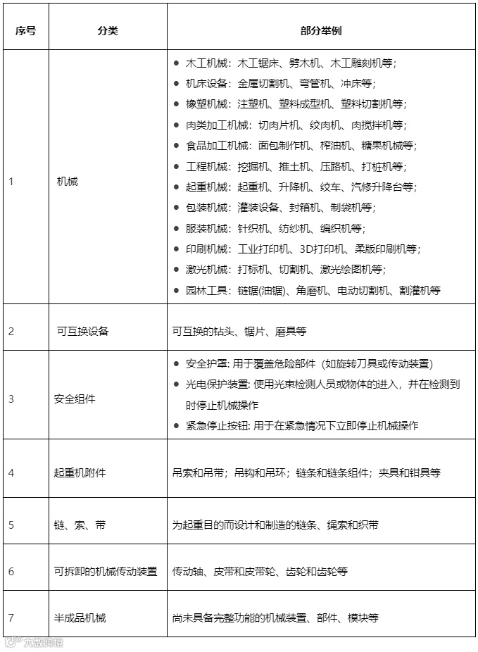 2、本规则适用于所有销往欧盟市场的需符合机械指令/法规的商品,列举部分机械商品,包含但不限于: