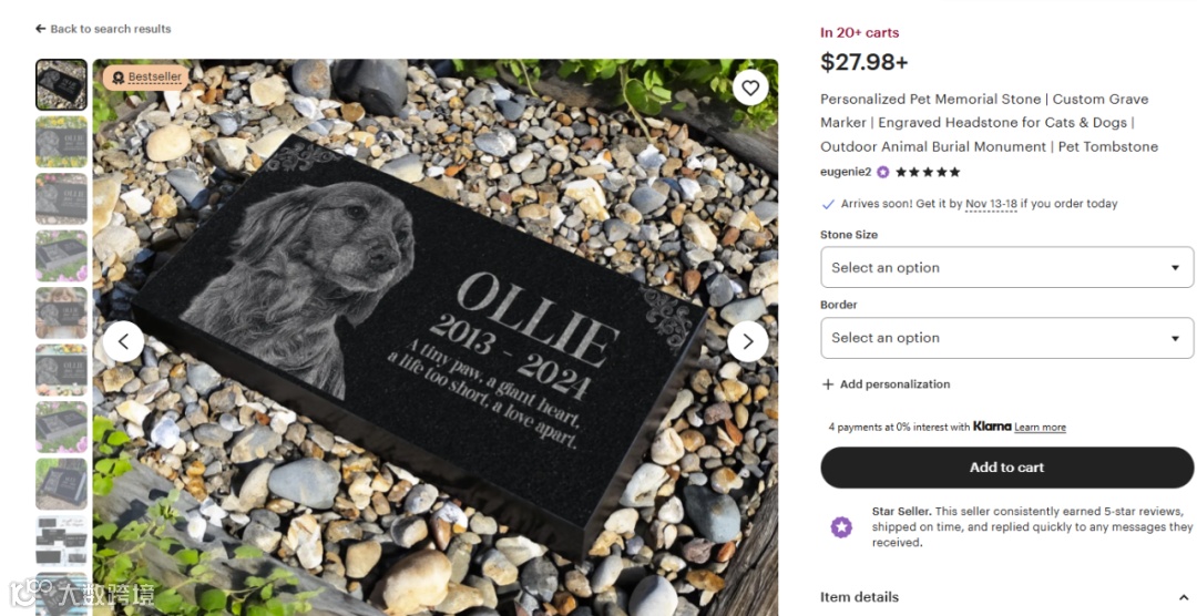 其中,销量最为突出的是一款“个性化宠物纪念石”。该产品专为缅怀不同种类的宠物设计,支持根据宠物特征进行定制,不仅可刻写任意长度的文字,还能镶嵌宠物照片。