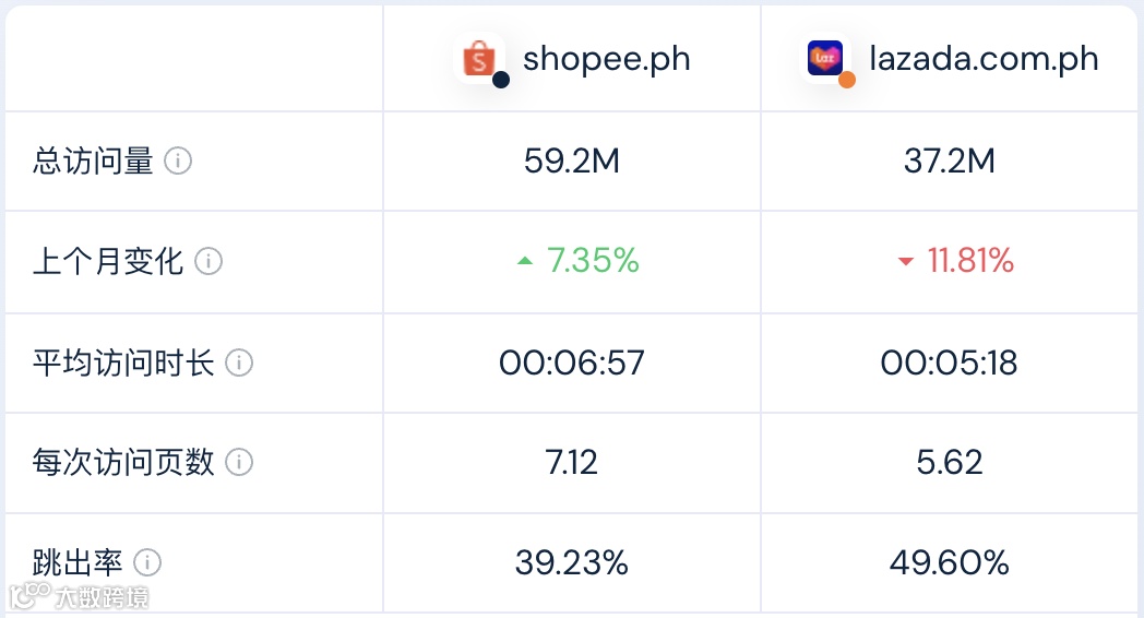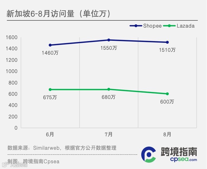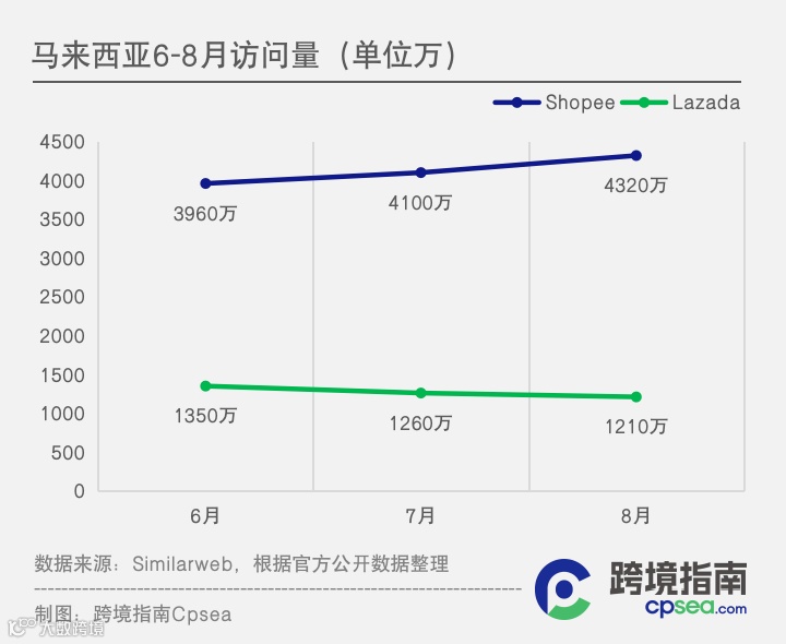 在8月,Shopee总访问量环比上涨4.19%,Lazada总访问量降幅进一步扩大。