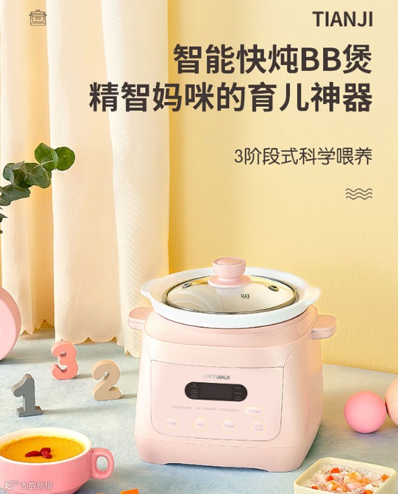 专为母婴设计,配备六大辅食菜单与三段式育儿烹饪程序,科学满足不同年龄段婴幼儿的营养需求。通过细腻软绵的炖煮口感,助力宝宝肠胃发育与咀嚼功能训练,实现全阶段营养补充[k]。
