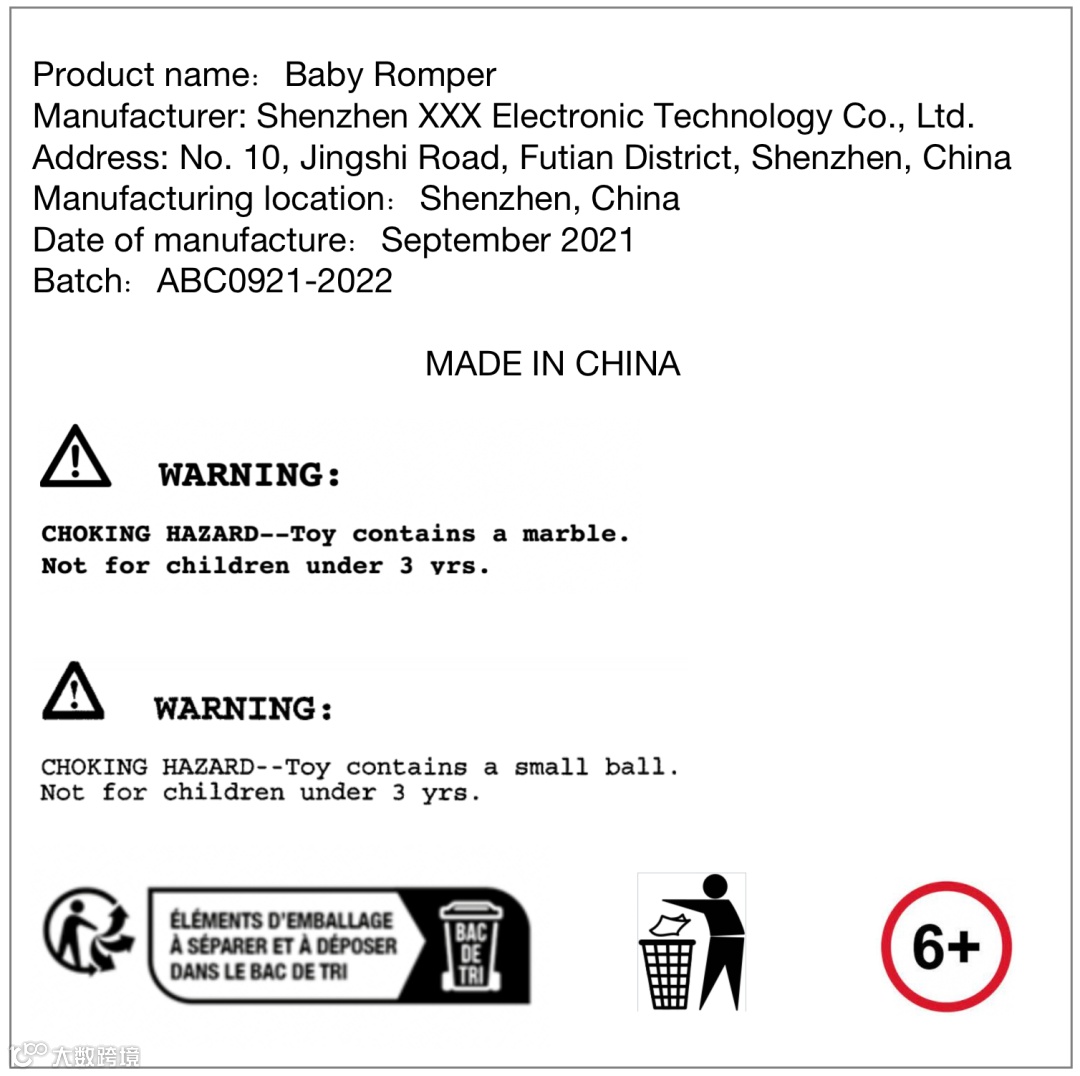 3、相关信息需要印刷在商品实际外包装材料上,确保印刷清晰,不易损坏,不可在快递外包装上(特别提醒:因为热敏标签在运输和商品使用过程中容易损坏,导致信息无法丢失)溯源,因此热敏标签的形式目前也是不合规的);