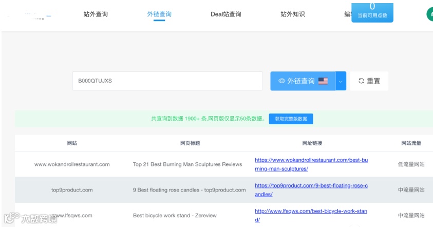 通过产品的ASIN或产品链接,查询产品外链: