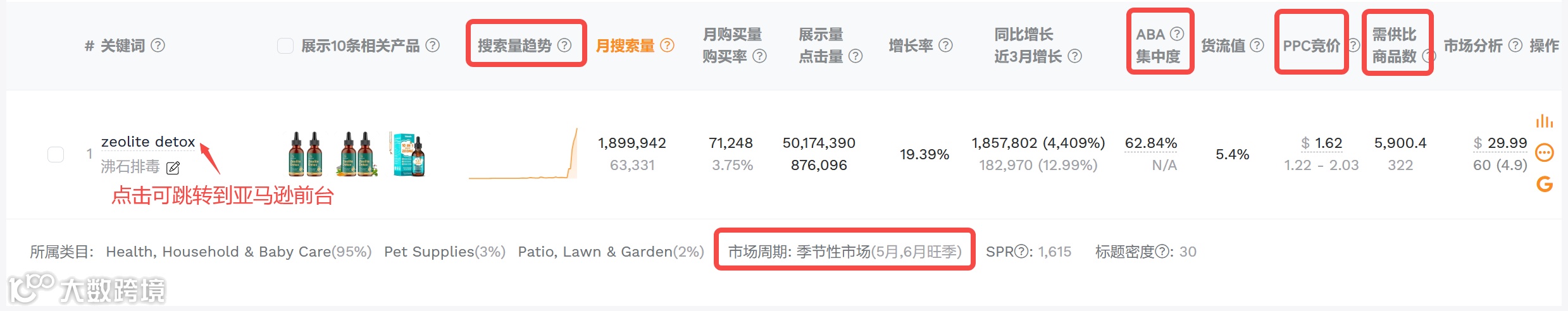 ②ABA集中度:集中度越低越好,小于50%相对健康,新卖家有机会。