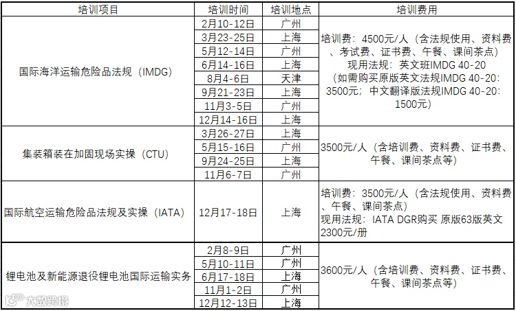 涵盖海运、空运、锂电池运输及CTU实操,助力企业合规与人才能力提升