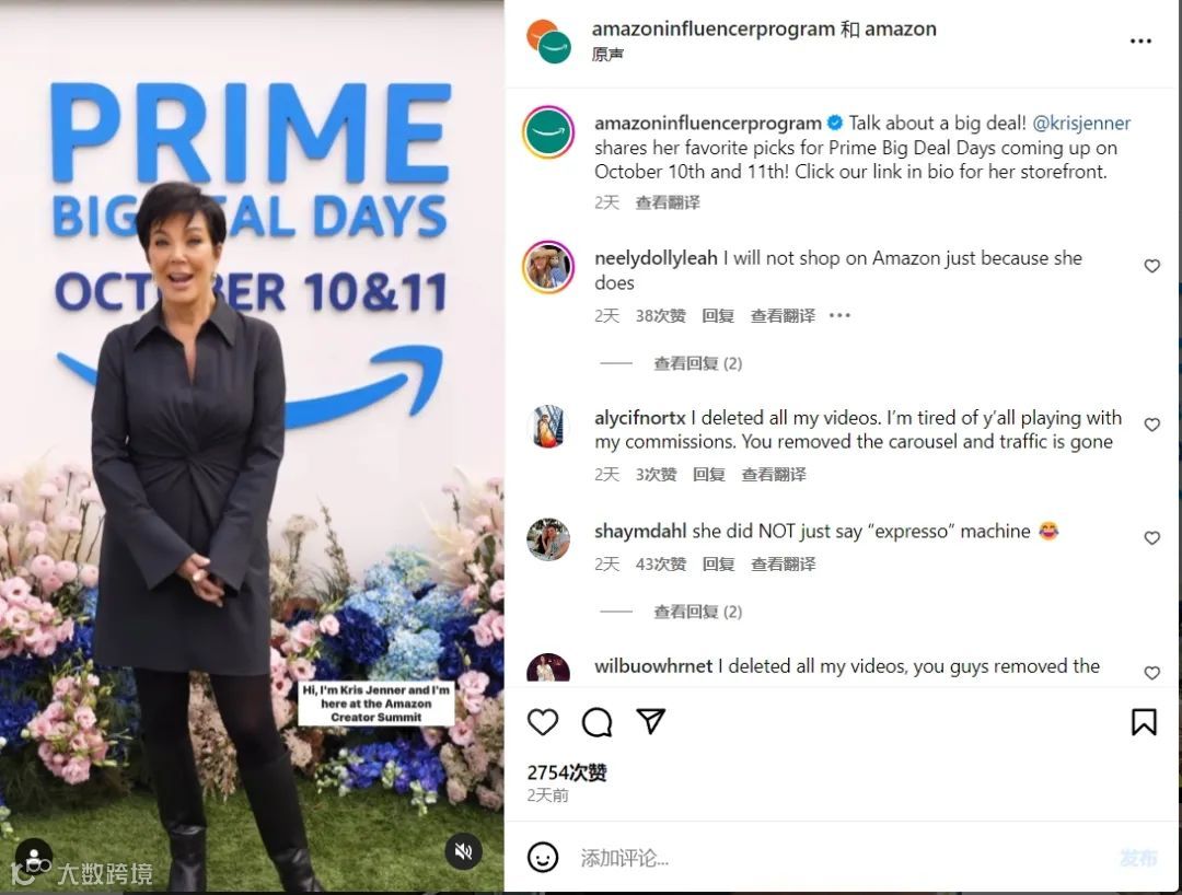 在其自有社交媒体,亚马逊和它的红人计划这次邀请了卡戴珊家族的妈咪Kris Jenner为会员日站台,让消费者留意这次会员日大促