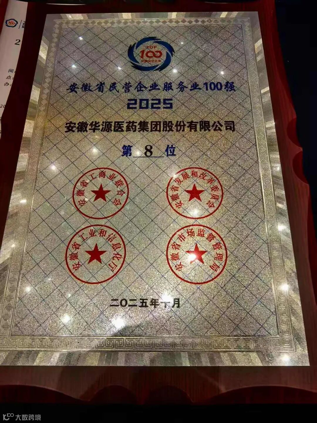 安徽华源医药集团位列2025安徽省民营企业营收百强第30位!服务业百强第8位!吸纳就业百强第39位!