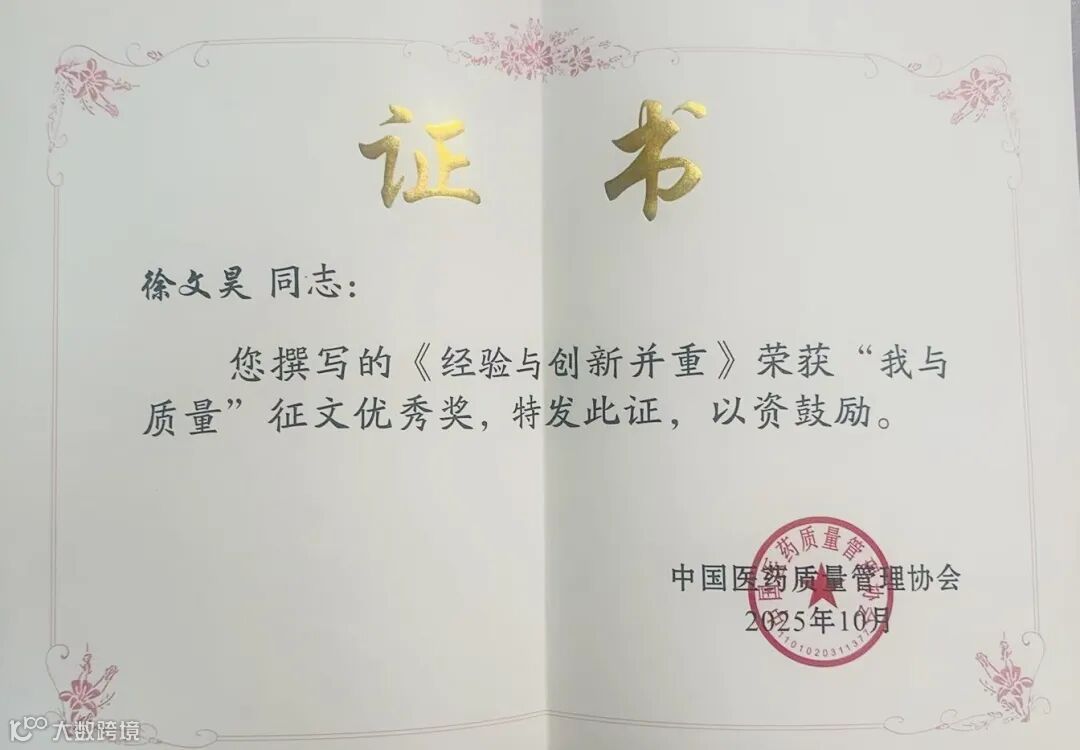 近日,由中国医药质量管理协会主办的第六届 “我与质量” 征文活动圆满落下帷幕。本次活动以“培育新质生产力,赋能高质量发展”为核心主题,旨在深入贯彻“质量强国”“健康中国”战略,展示医药行业质量工作者先进事迹,推动行业质量管理水平提升,吸引全国医药行业众多质量工作者与管理者踊跃参与。