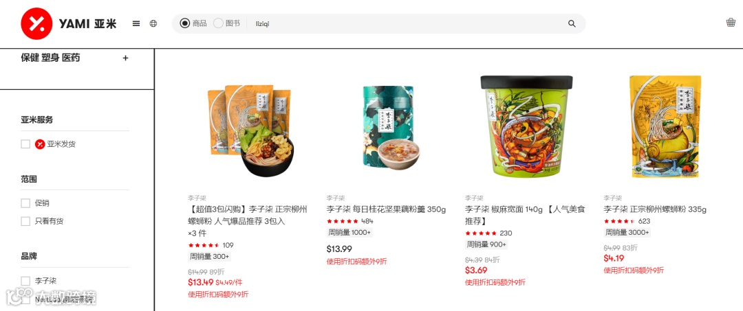 此外,超级单品李子柒螺蛳粉和李子柒藕粉,不仅在国内畅销,在海外华人电商平台上也是爆款,螺蛳粉在亚米网的周销量达到了3000+。