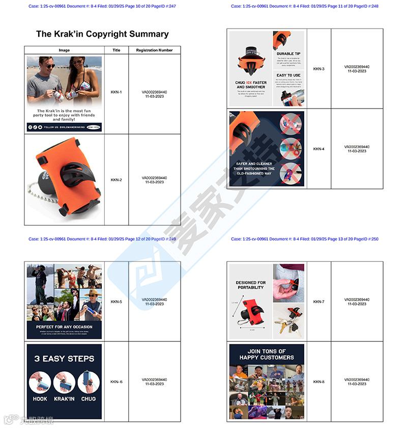 近期麦家支持被问得最多的神秘案件之一25-cv-00961案件到底维权的是个啥?原来是Flener律所1月底代理的一起密封专利+版权+商标全方位维权案件,该案件前期一直处于密封状态,直至2月5日通过法院签署的TRO临时限制令,涉案的205个账户资金被冻结(需要名单的卖家可联系我们获取),不少卖家仍不知所以然!目前该案件已申请延长TRO至3月5日,案件细节逐一披露,涉案产品为一款Krak'in饮料穿刺器,跨境卖家速速一探究竟,分析案件细节,尽快做出响应!
