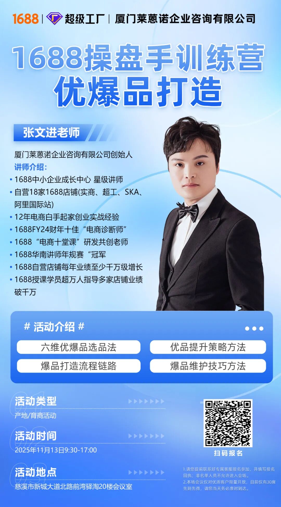 【活动推介】1688操盘手训练营 | 优爆品打造