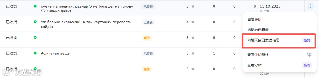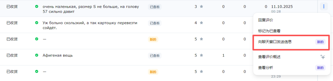 最近Ozon开通了新功能,在评价里可以直接向客户发送信息,我们尽量通过沟通做最后的挽救。(操作方法如下)