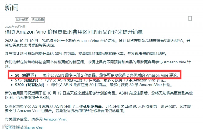 亚马逊新政策 0 费用做VINE VOICE