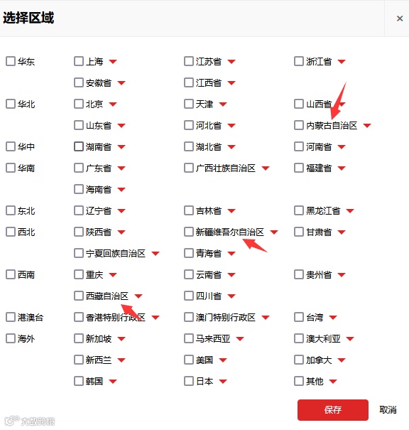 针对偏远地区如新疆、西藏、内蒙古等,建议单独设置运费规则。由于部分快递无法覆盖,可将首费与续费设为较高金额(如999元),以避免无效订单产生[1]。