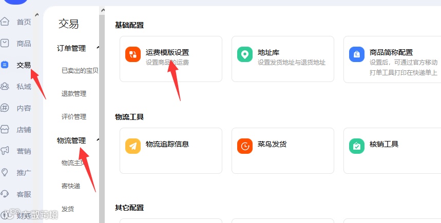 进入【交易—物流工具—运费模板设置】页面,点击新增运费模板即可开始配置[1]。