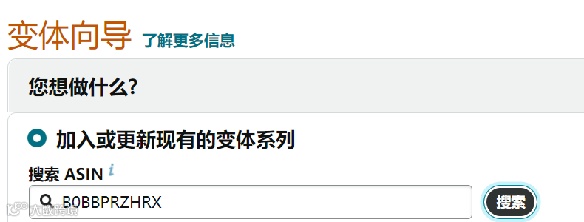 第三步:选择“加入或更新现有的变体系列”输入想要了解的ASIN,即可