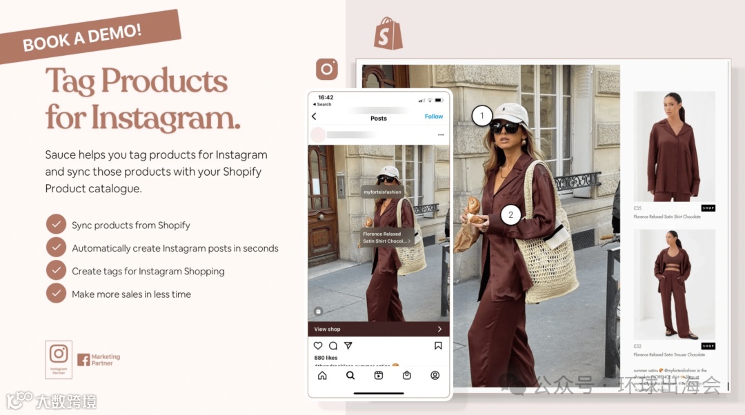 Instagram已成为欧美时尚品牌的重要销售渠道,超80%的美国时尚品牌在该平台销售。通过Snapppt插件,可将Shopify商品同步至Instagram,优化外链功能,引导用户至可浏览并完成购买的落地页。插件经测试不影响店铺加载速度[k]。
