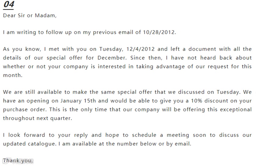 记得也要注意正式信件里我们不会把一个句子全部大写,不过可以用粗体让重点句子比较明显。