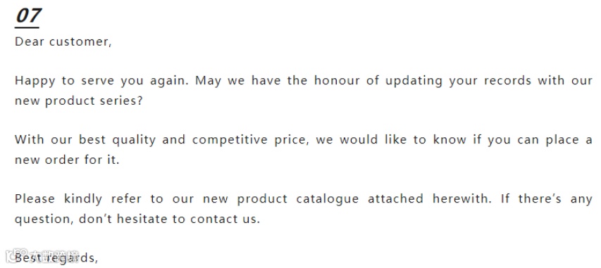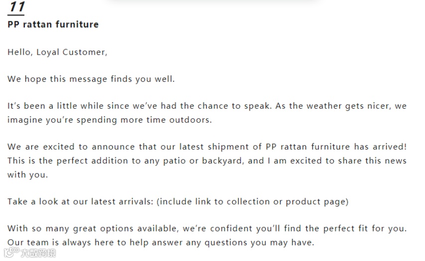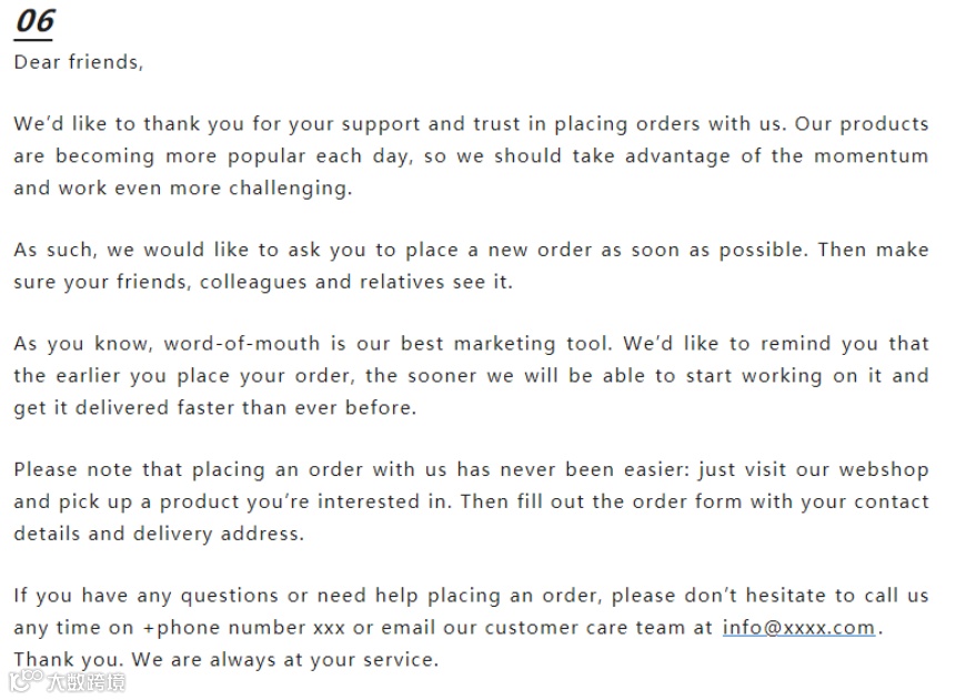 你可以把这些信息融进邮件里,写一封邮件来吸引客户的注意力,鼓励他们再次购买。