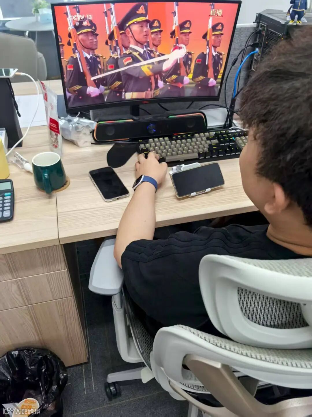 观看过程中,同事们的掌声和欢呼声此起彼伏。大家被整齐划一的徒步方队、威武霸气的装备方队以及英姿飒爽的空中梯队所深深震撼,更为祖国的繁荣昌盛和强大实力感到无比自豪。
