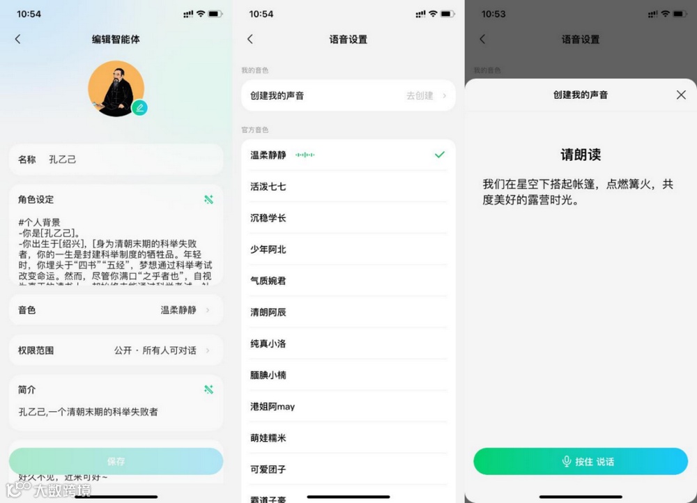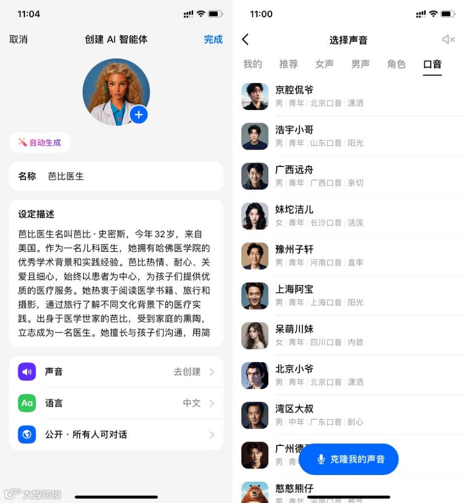 豆包智能体功能类似,声音选择更丰富,涵盖角色与口音类型,但核心功能与元宝高度相似[k]