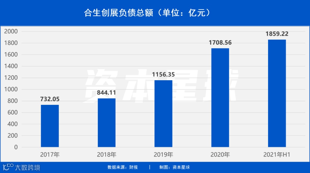 负债总额从2018年的844.11亿元增至2021年上半年的1859.22亿元,两年半内增长超两倍[k]。
