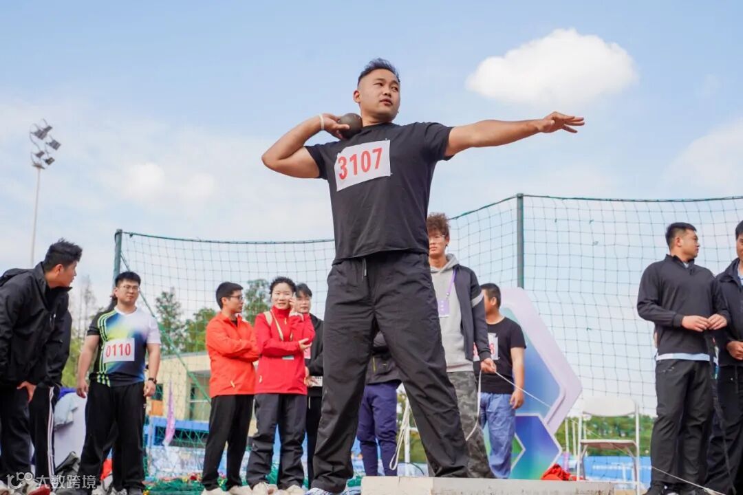 ▲邹元辉在2025年镇海基地第二届职工运动会男子甲组铅球比赛中