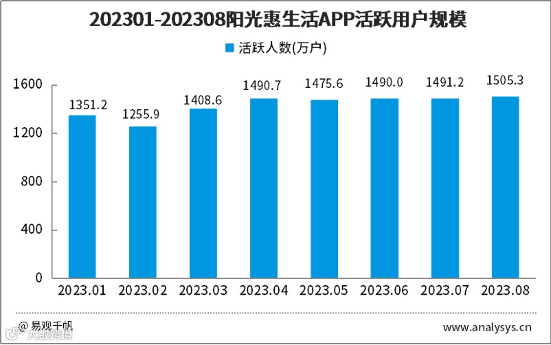 图3:202301-202308阳光惠生活APP活跃用户规模