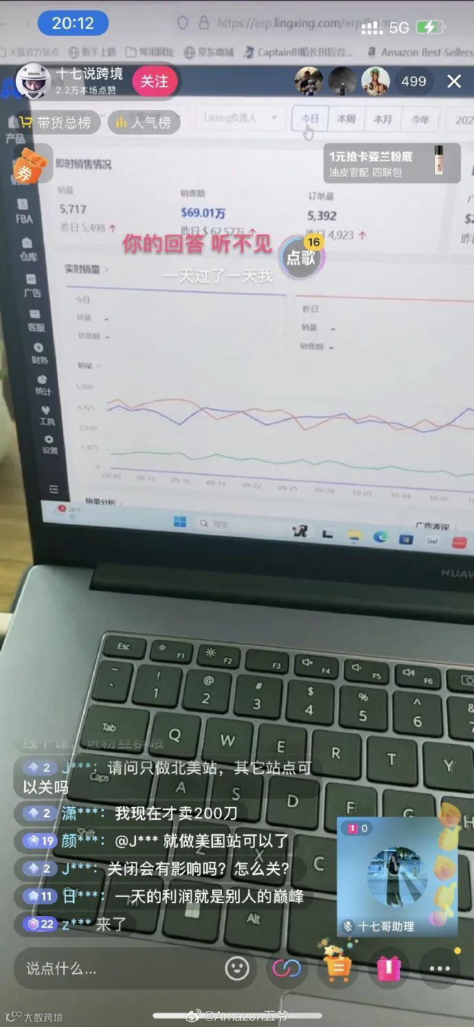 选手1:如果这个数据如果是真的,今日的美国站单量估计有6-8万单,销售额800-1000万一天。这样的客单价还有这个体量,实属厉害!