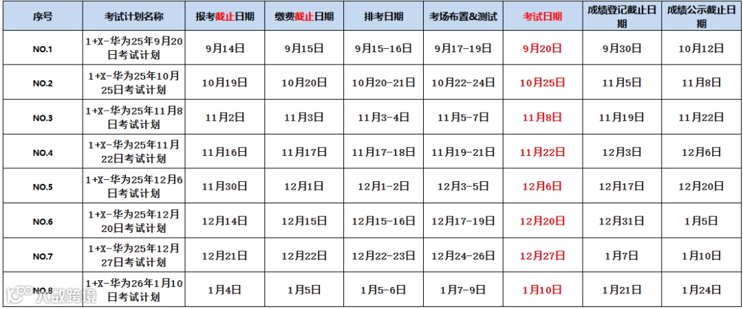 3、注意排考截止日期:如有变动须在排考日期截止前完成。如取消计划,或个别考生因特殊情况不能参加考试,可在系统中取消或联系华为交付负责人,申请考试费用保留;如排考日期结束后,将无法更改。