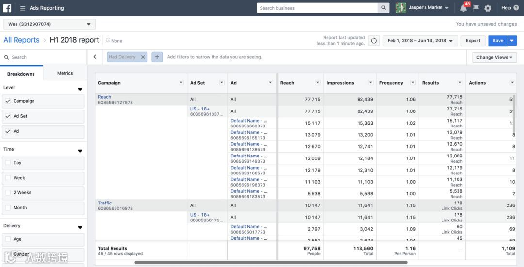 为提升广告数据分析效率,Facebook更新Ads Report功能,支持广告主通过拖放方式自定义指标报表[k]。