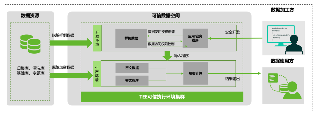 数据加工区通过可信执行环境、数据沙箱、访问控制技术为数据加工利用提供安全的环境,同时提供隐私计算技术,为数据提供丰富的加工处理能力。