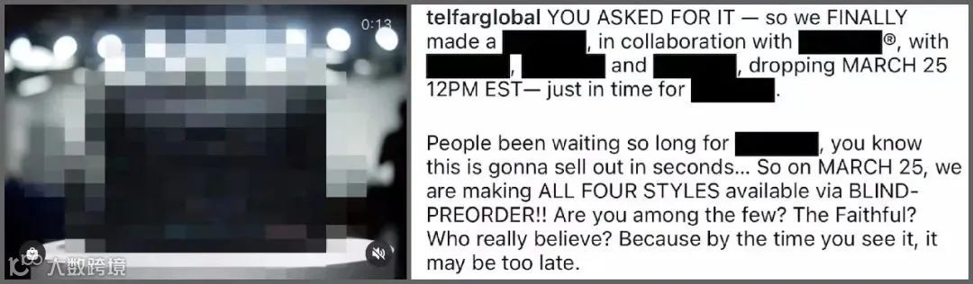 在某次品牌宣传时,品牌方并没有预先公布联名方,也没有公布包包的具体外观,而是代之以马赛克处理,让用户在评论区积极地与品牌产生互动,吊足用户的口味。